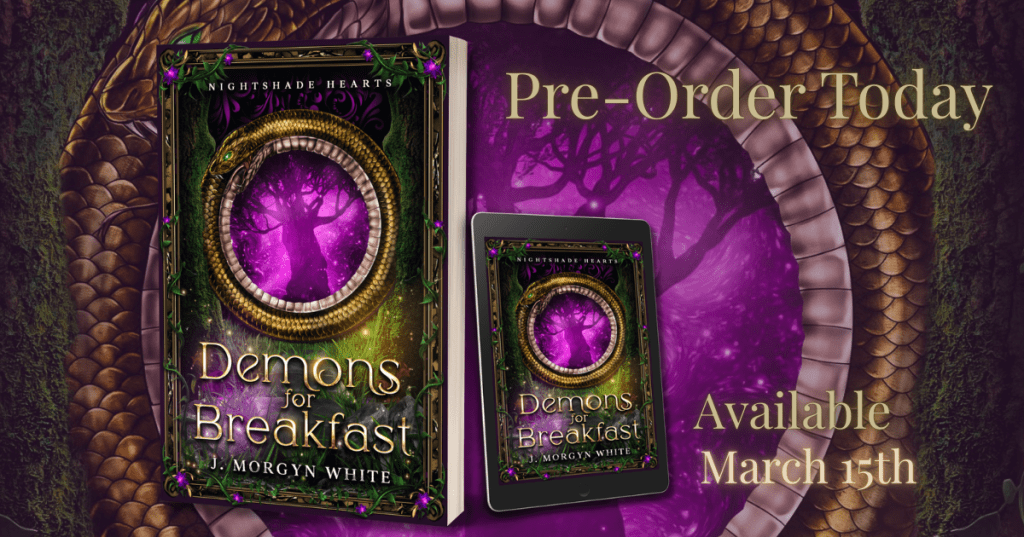 Releasing on March 13th, Demons For Breakfast by J. Morgyn White gets featured this week. Let’s dive into this upcoming witchy urban fantasy.