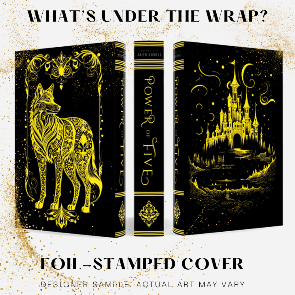 - A DECADENTLY ILLUSTRATED 720-page hardcover omnibus, with a full dust jacket, printed edges, and a cover kissed with gold stamping and exquisite foiling. The special cover was designed by Rostfreien for this print run specifically. This will be the first Power of Five book ever to have a dust jacket, printed edges, and illustrations.